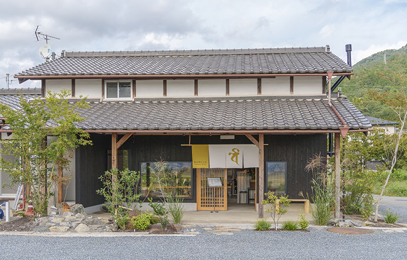 亀岡盆地が眺められる高台に建つ古民家カフェ「和カフェ 毘沙門てらす」。毘沙門という名前は店の近くにある古寺「神応寺」が丹波七福神の毘沙門天をまつるお寺であることに由来します。